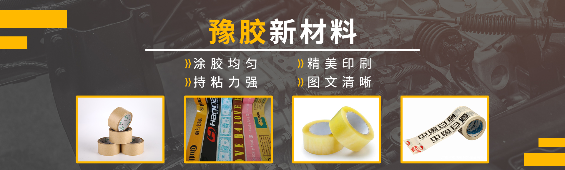 河南豫膠新材料科技有限公司,廠區(qū)占地2萬(wàn)平方米,員工200余人,我公司是一家集研發(fā)、訂制、生產(chǎn)、銷售為一體的綜合型企業(yè)。主要生產(chǎn):封箱膠帶、印字廣告膠帶、海綿膠帶、中高溫雙面膠帶、中高溫美紋紙膠帶、牛皮紙膠帶、等各種膠帶。公司落在歷史悠久、文化深遠(yuǎn)、風(fēng)景秀麗的河南省省會(huì)--鄭州,現(xiàn)在的鄭州是整個(gè)中原崛起計(jì)劃的腹地,經(jīng)濟(jì)發(fā)達(dá),交通便利。公司秉承"顧客至上,銳意進(jìn)取"的經(jīng)營(yíng)理念,堅(jiān)持"客戶優(yōu)先"的原則為廣大客戶提供優(yōu)質(zhì)的服務(wù)。歡迎惠顧!